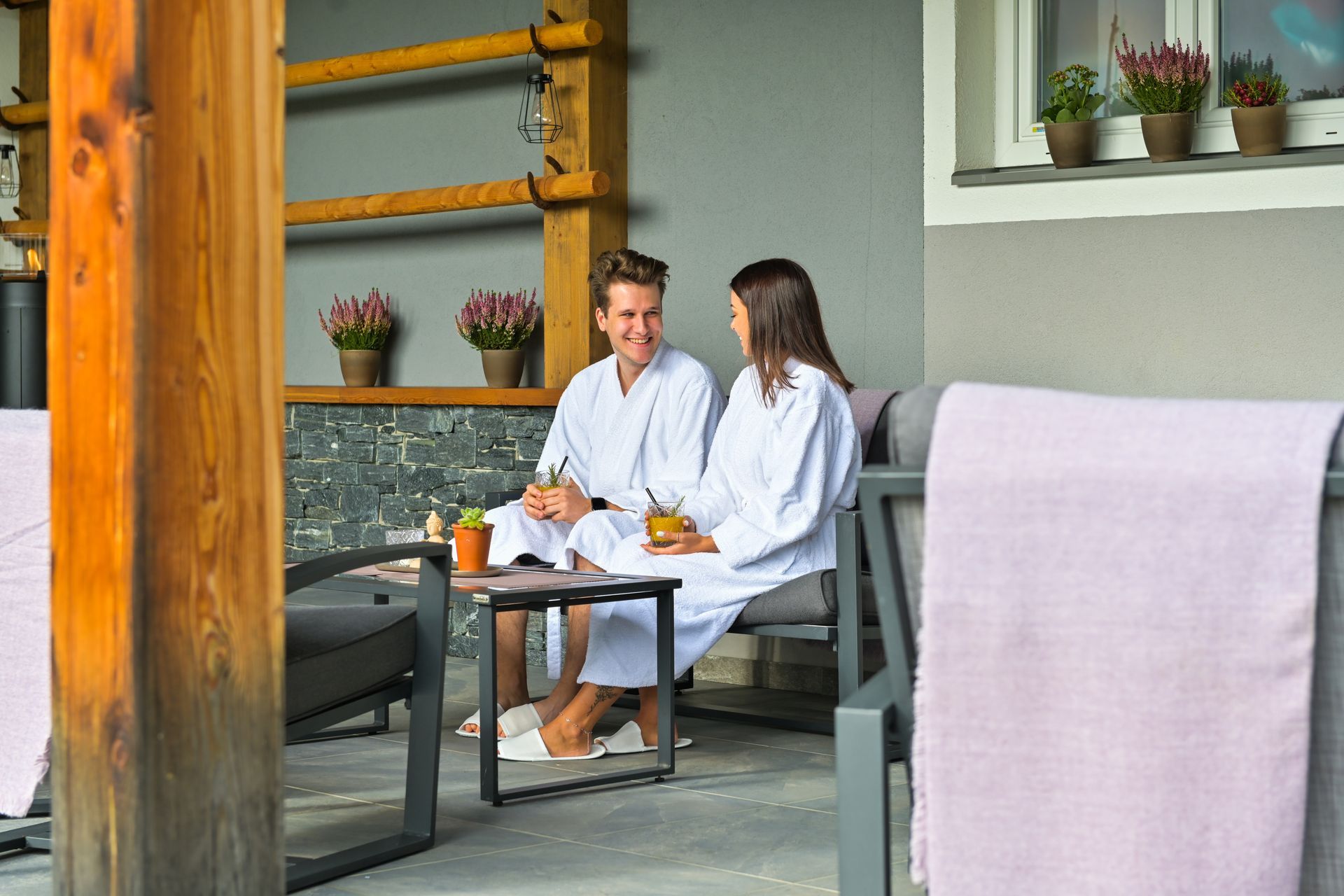 Anschließend können Sie sich im Ruheraum oder auf der Liegeweise ausruhen. Es stehen Ihnen eine Saftauswahl, Nüsse und